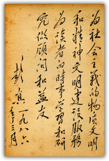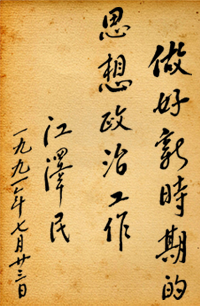 1991年7月 時任中共中央總書記江澤民為"半月談思想政治工作創新"題詞:做好新時期的思想政治工作