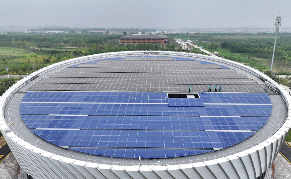 工人在雄安新區復興220千伏變電站屋頂工作 楊世堯 攝
